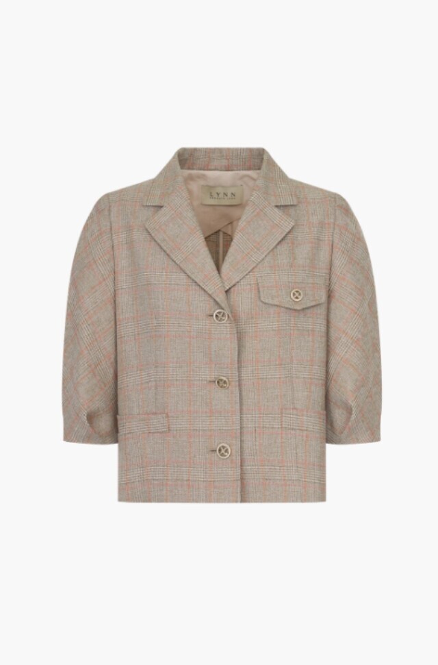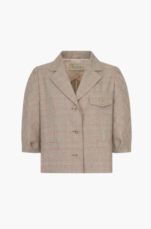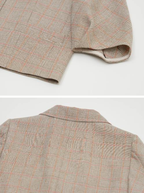 린 체크 크롭 린넨 자켓 LWJKNH0200