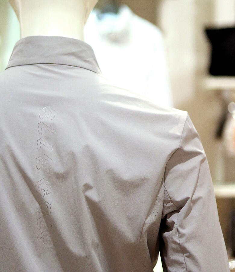 어깨에 로고 포인트,등판 로고 레이저 펀칭으로