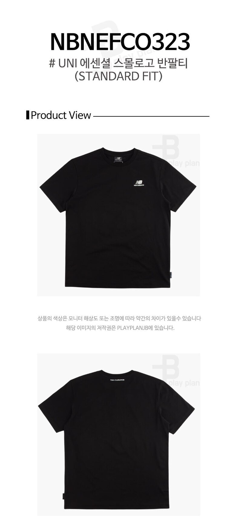 뉴발란스 공용 에센셜 스몰 로고 반팔티 블랙 NBNEFCO323