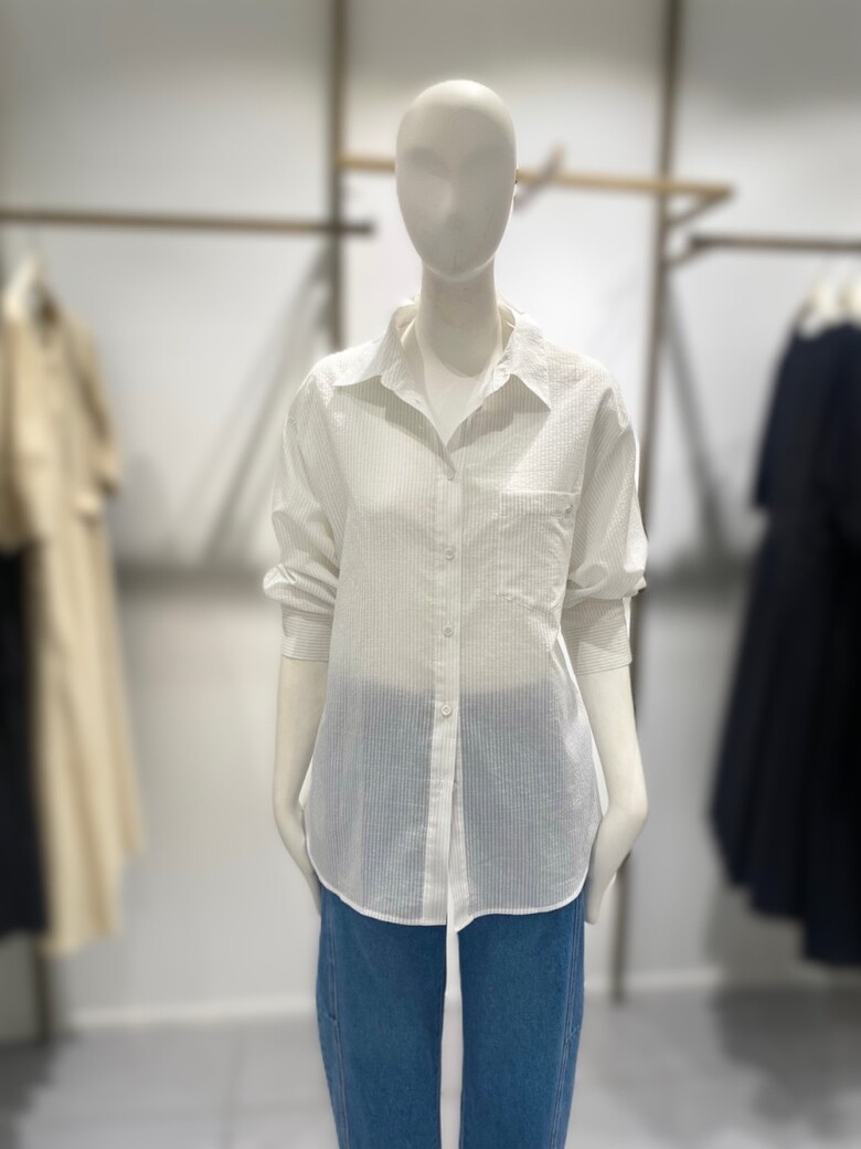 뒷판 벨티드로 라인을 잡아주는 루즈핏 셔츠입니다.