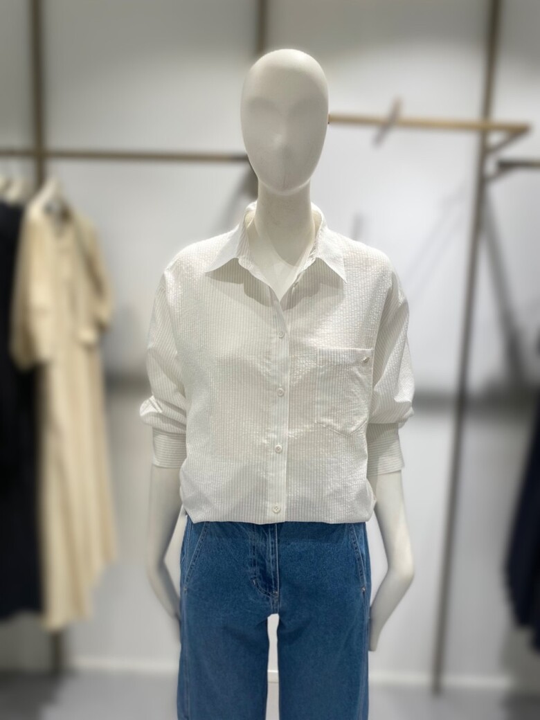 루즈핏 덧장 벨티드 블라우스 NJW5MB527