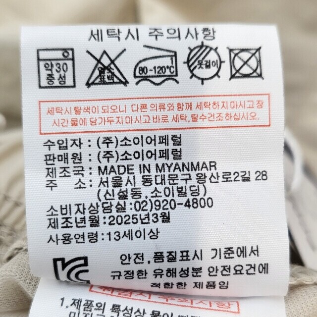 | 1. 제품 소재 (섬유의 조성 또는 혼용률을 백분율로 표시, 기능성인 경우 성적서 또는 허가서) | 상품상세참조 |