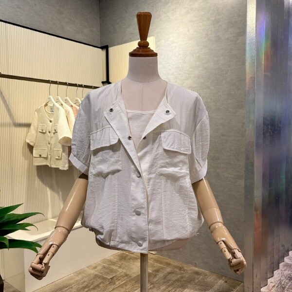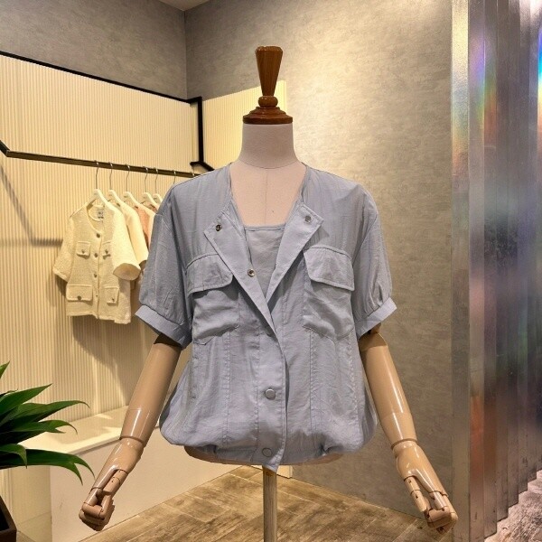 2025년 s/s 신상?라운드 단추 포켓 점퍼 입니다.멋스럽고 여성스런 캐주얼 아우터 입니다.
