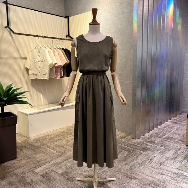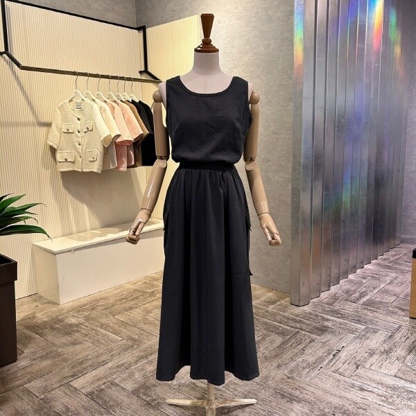 AOZ2HO39F_라운드 밴딩 카고 롱 원피스