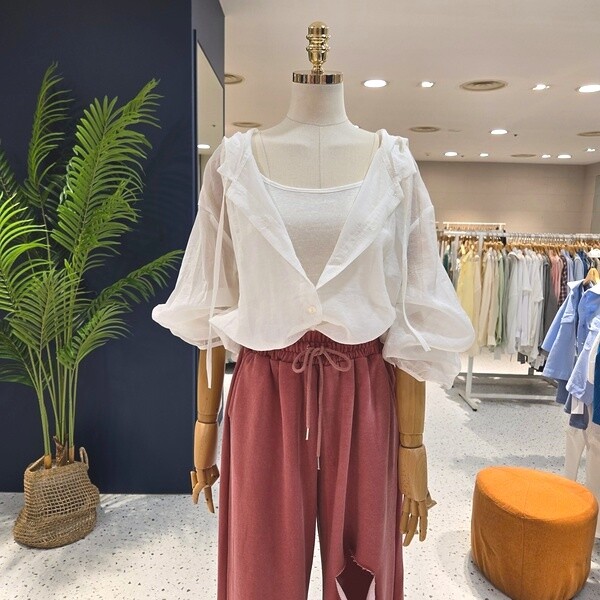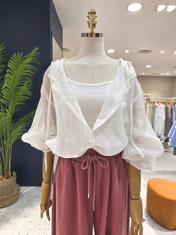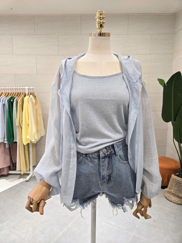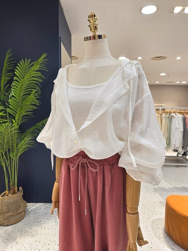 C23E7FNB031_시스루 민소매 후드 셔츠 세트