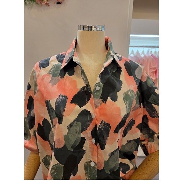 치수 : FREE /어깨너비 57cm 가슴단면 64cm 소매기장 21cm 총 기장 56cm