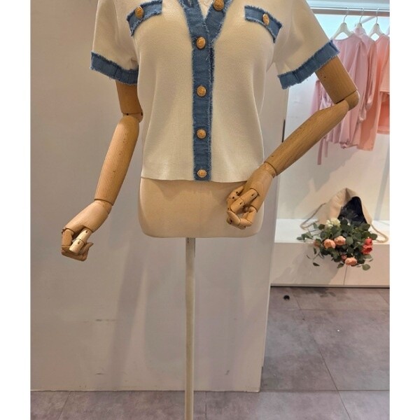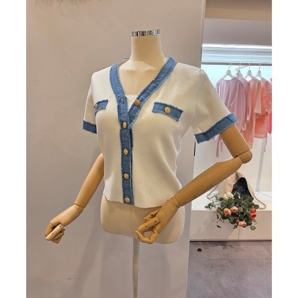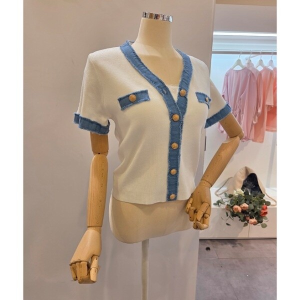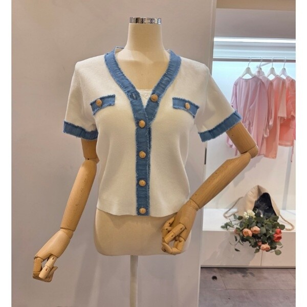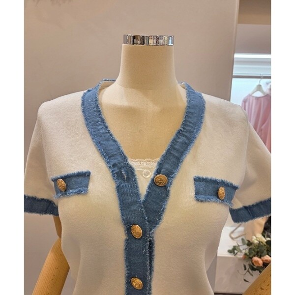 CP5WKC01_청 배색 브이넥 가디건