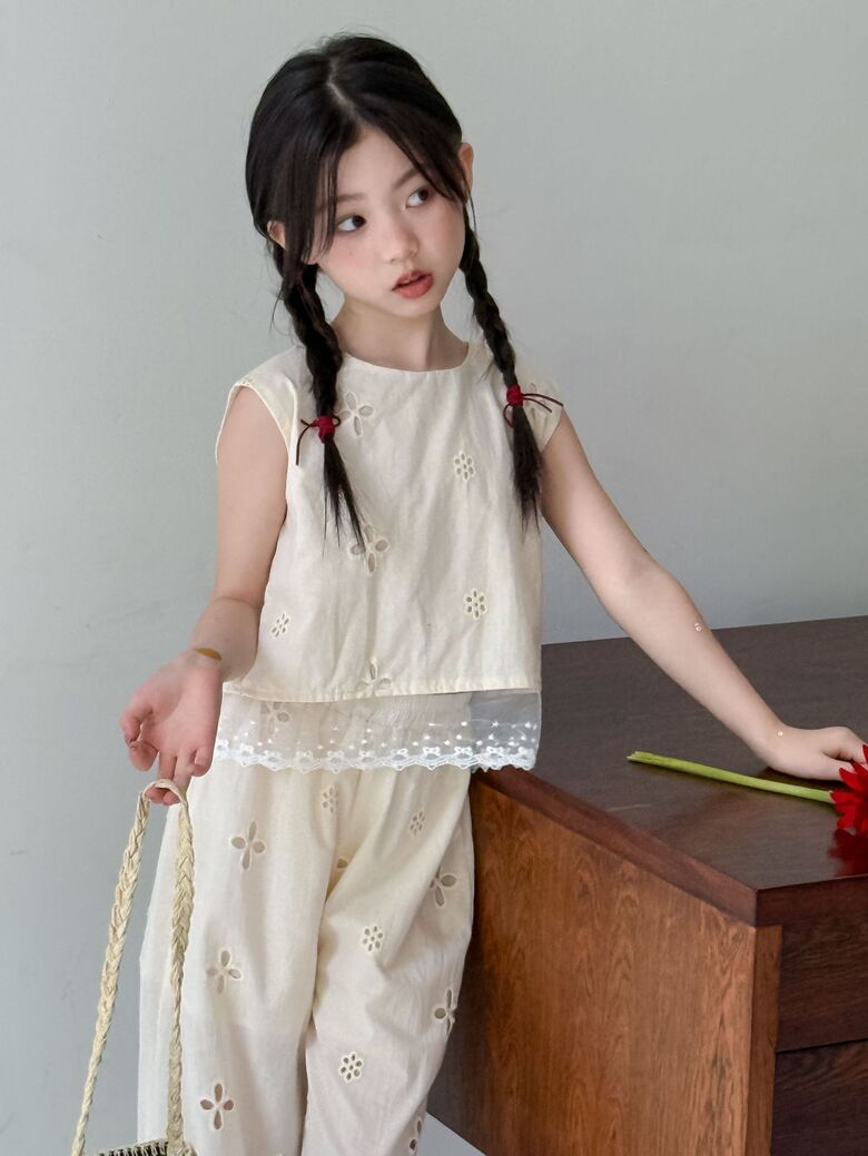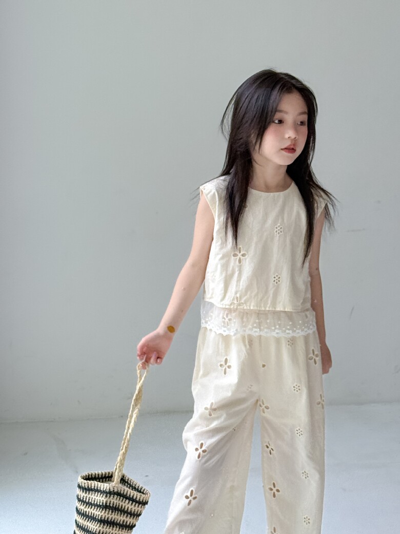 [예약발송] 플라워 펀칭 상하복 세트 R14341