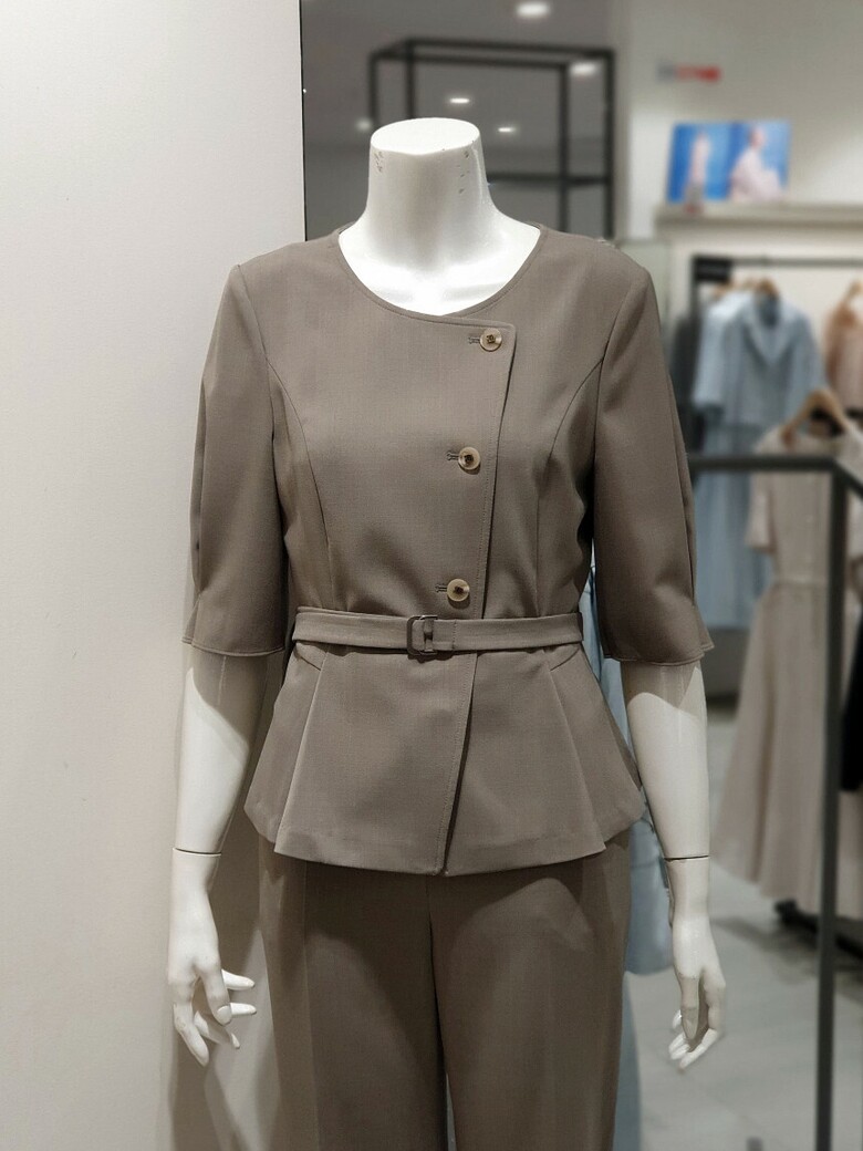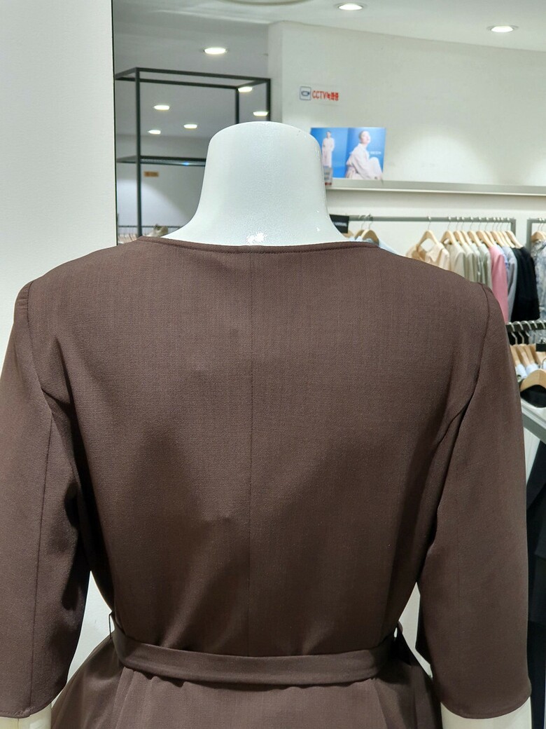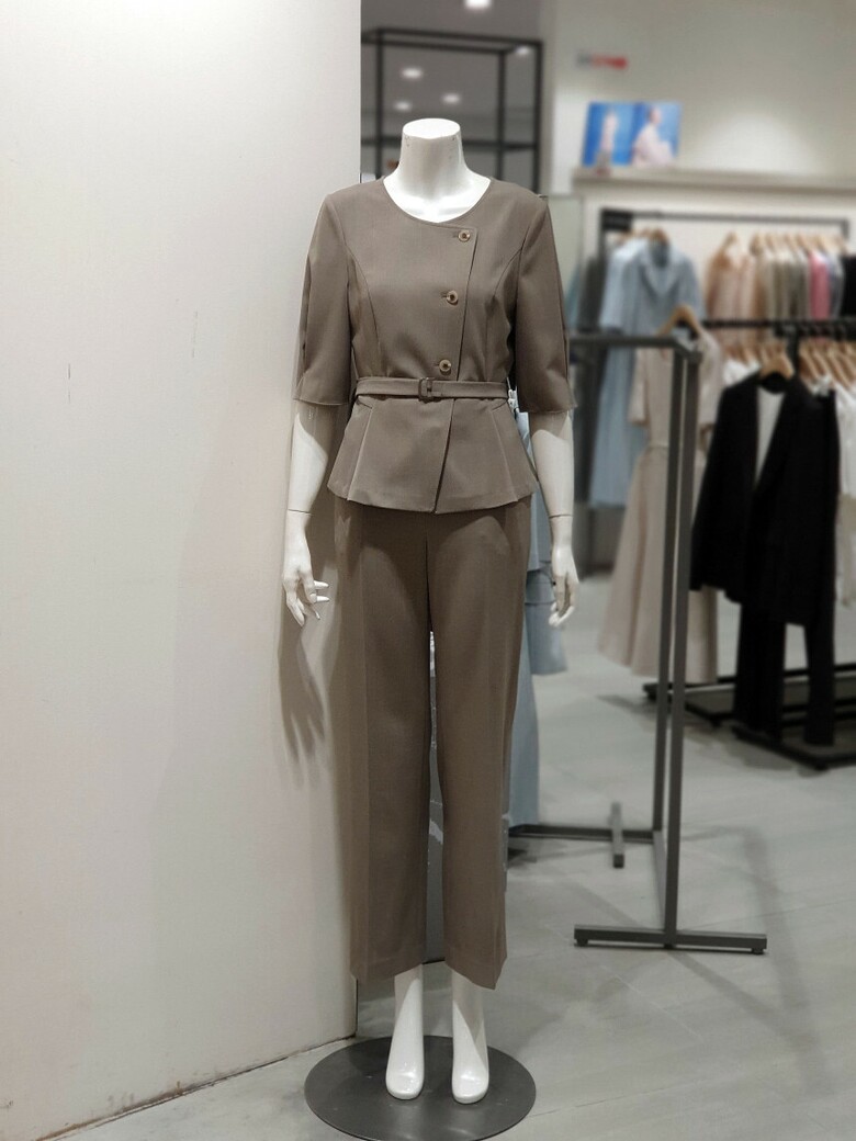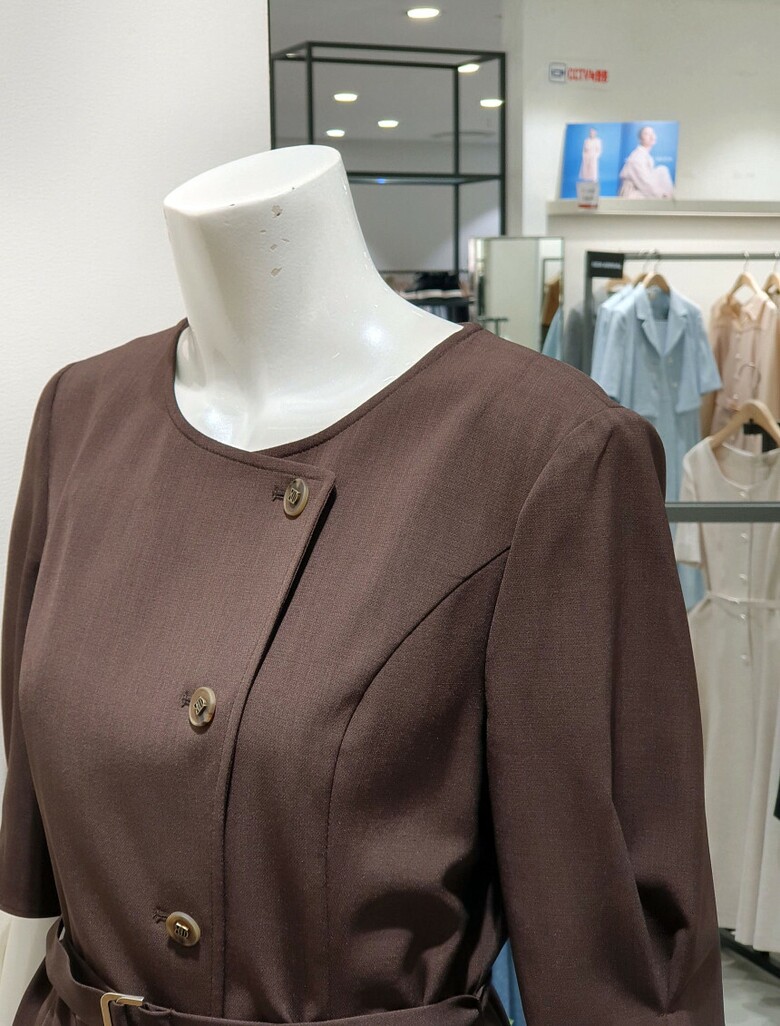 라운드 넥 라인에 슬림한 허리 핏을 연출하는