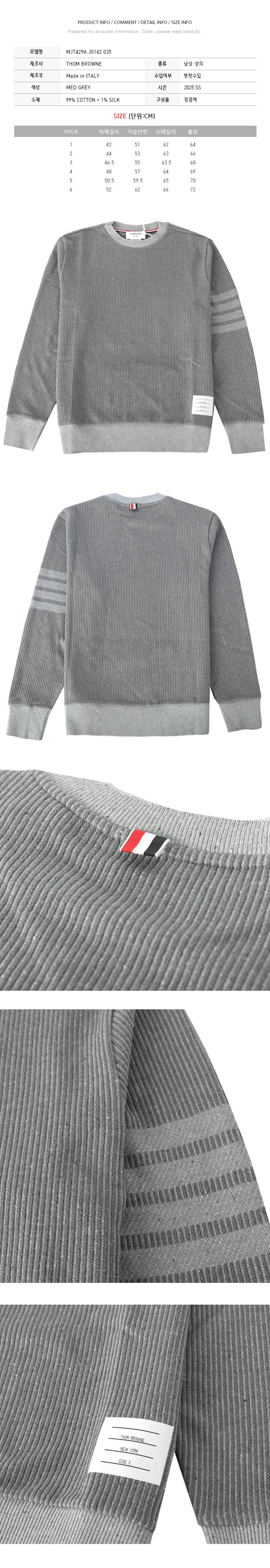 - #리본즈코리아 #4407439-729696024 #[명품] #톰브라운 #25SS #사선 #루프백 #크루넥 #맨투맨 #매드그레이 #MJT429A #J0142 #035 #남성 #의류 #상의