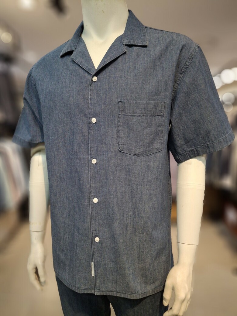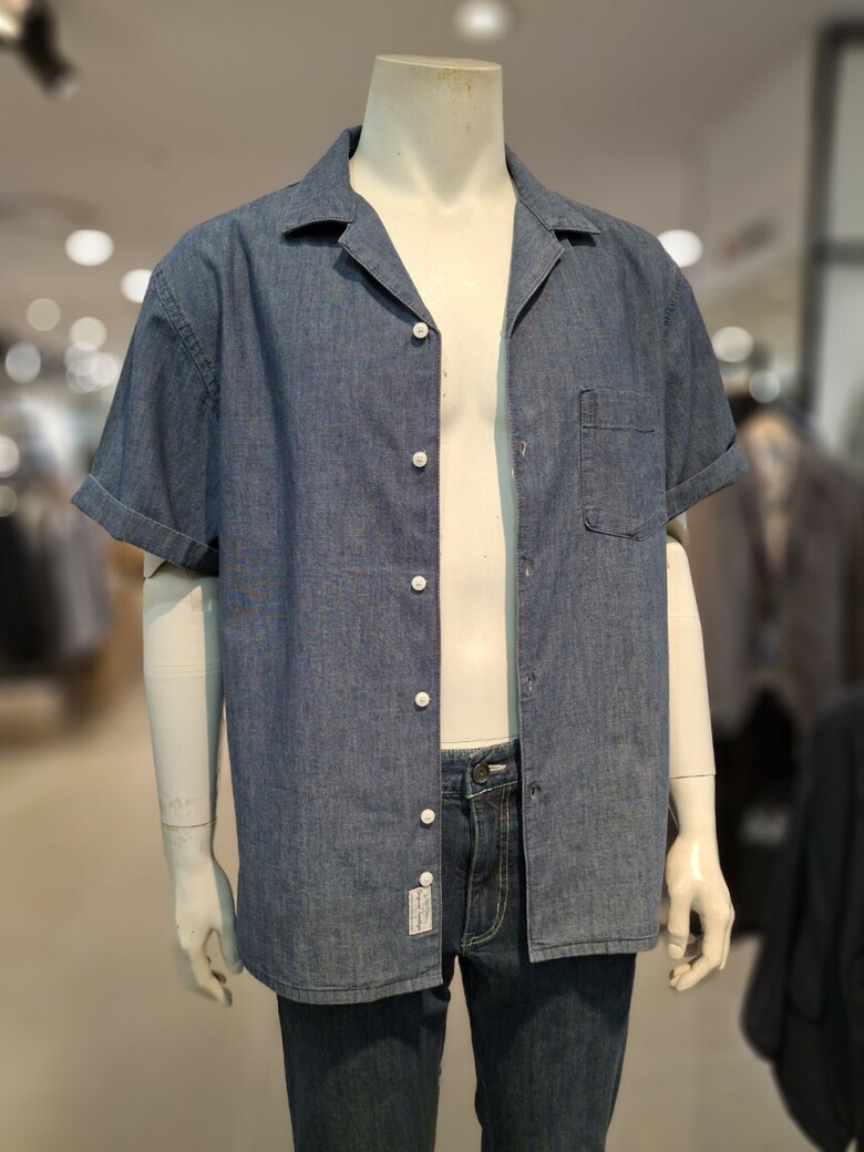 주)세정 트레몰로 25신상 가먼트워싱 V넥 데님 셔츠 인디고 TRHNS5M2381