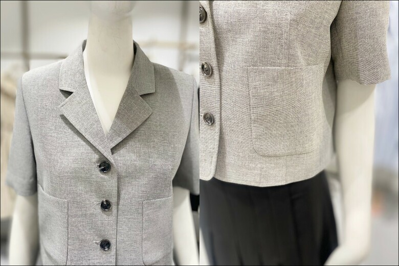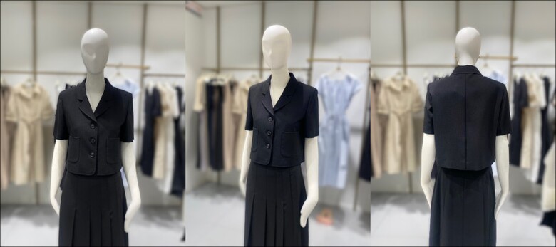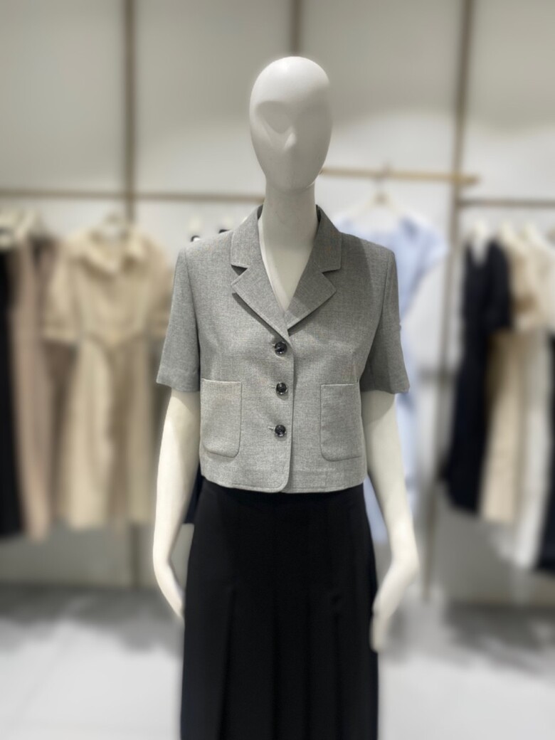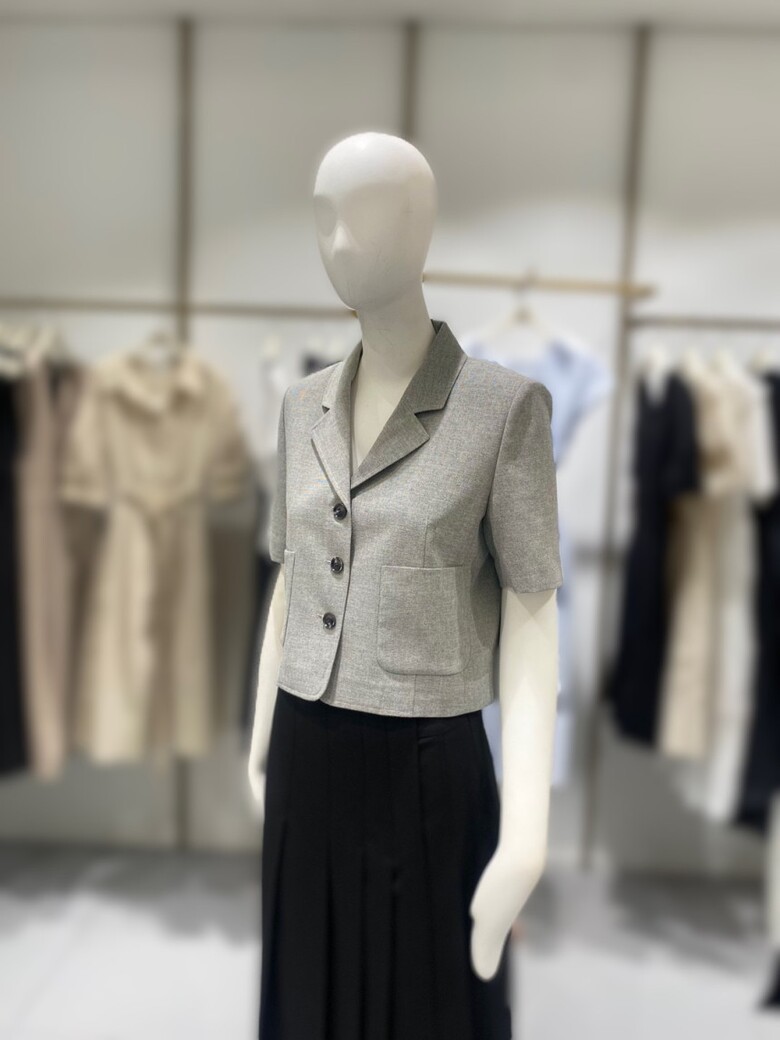 깔끔하게 떨어지는 카라넥에 크롭기장감이 유니크한 자켓입니다.