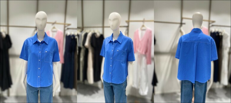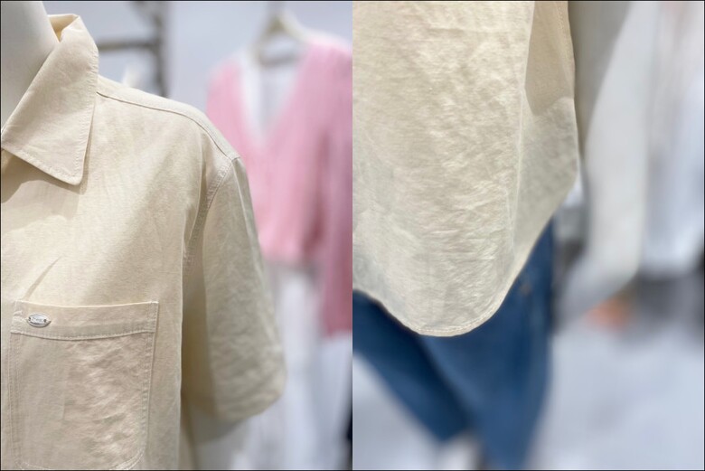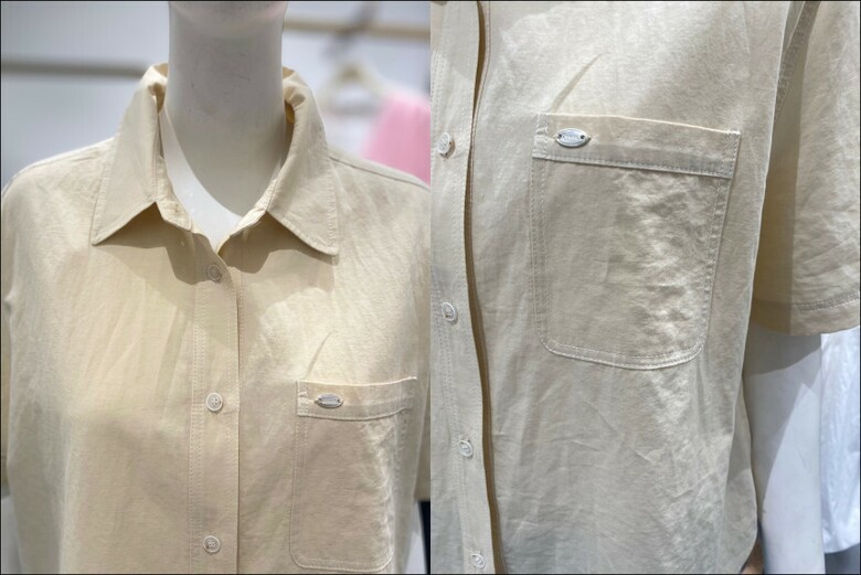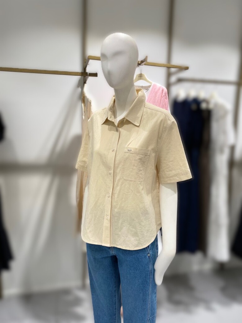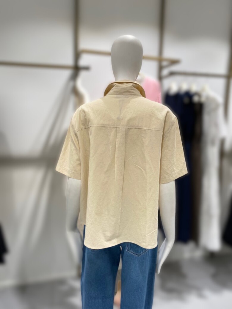 스티치로 포인트를 준 카라넥 셔츠입니다.