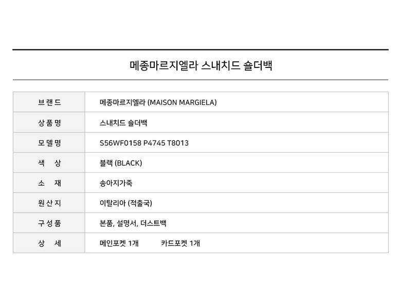 - #리본즈코리아 #S56WF0158P4745T8013 #[명품] #메종마르지엘라 #스내치드 #숄더백 #블랙 #S56WF0158 #P4745 #T8013 #여성 #가방/핸드백 #숄더백/호보백