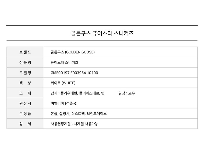 #리본즈코리아 #GMF00197F00395410100 #[명품] #25SS #골든구스 #퓨어스타 #스니커즈 #화이트 #GMF00197 #F003954 #10100 #남성 #슈즈 #로우탑스니커즈