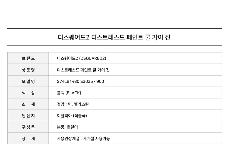 - #리본즈코리아 #S74LB1480S30357900 #[명품] #디스퀘어드2 #디스트레스드 #페인트 #쿨 #가이 #진 #블랙 #S74LB1480 #S30357 #900 #남성 #의류 #하의 #청바지