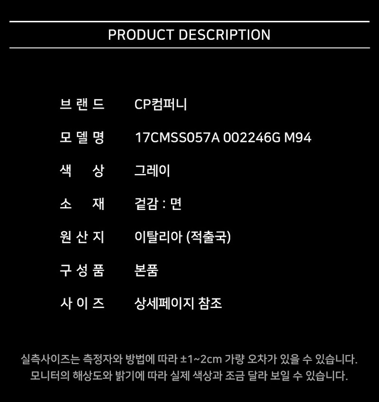 | 1. 제품 소재 (섬유의 조성 또는 혼용률을 백분율로 표시, 기능성인 경우 성적서 또는 허가서) | 상세페이지 참조 |