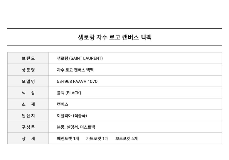 [명품] 생로랑 로고 캔버스 시티 백팩 블랙 534968 FAAVV 1070
