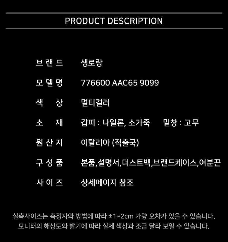 | 1. 제품 소재 (운동화인 경우에는 겉감, 안감을 구분하여 표시) | 상세페이지 참조 |