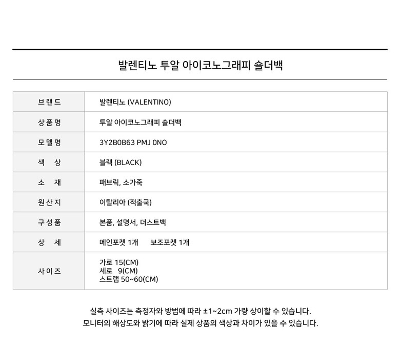 - #리본즈코리아 #3Y2B0B63PMJ0NO #[명품] #발렌티노 #투알 #아이코노그래피 #숄더백 #블랙 #3Y2B0B63 #PMJ #0NO #여성 #가방/핸드백 #숄더백/호보백