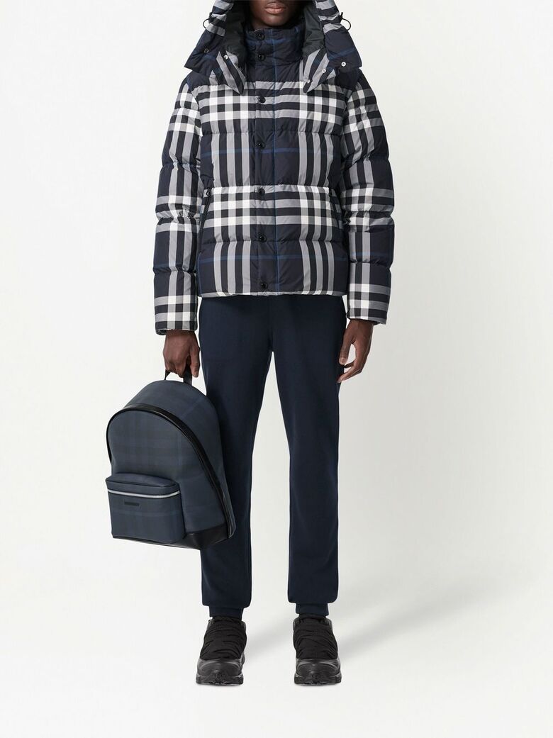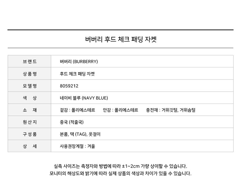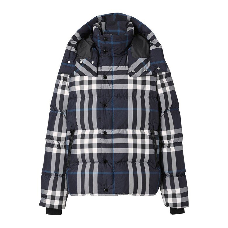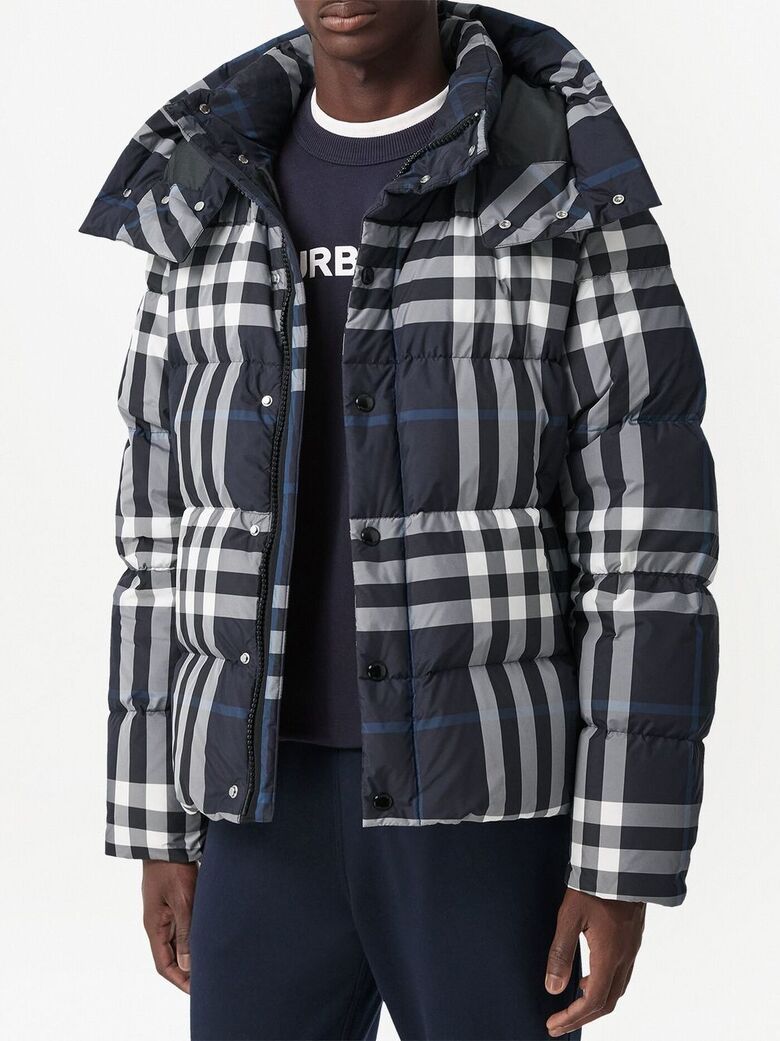 [명품] 버버리 후드 체크 패딩 자켓 네이비블루 8059212