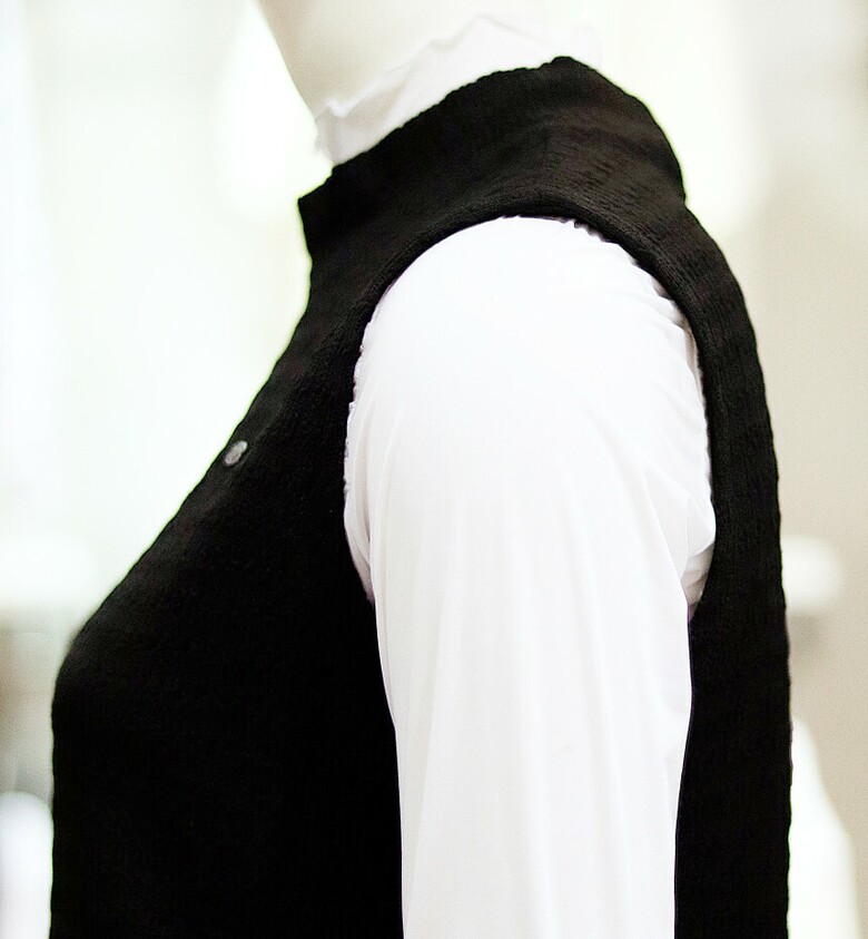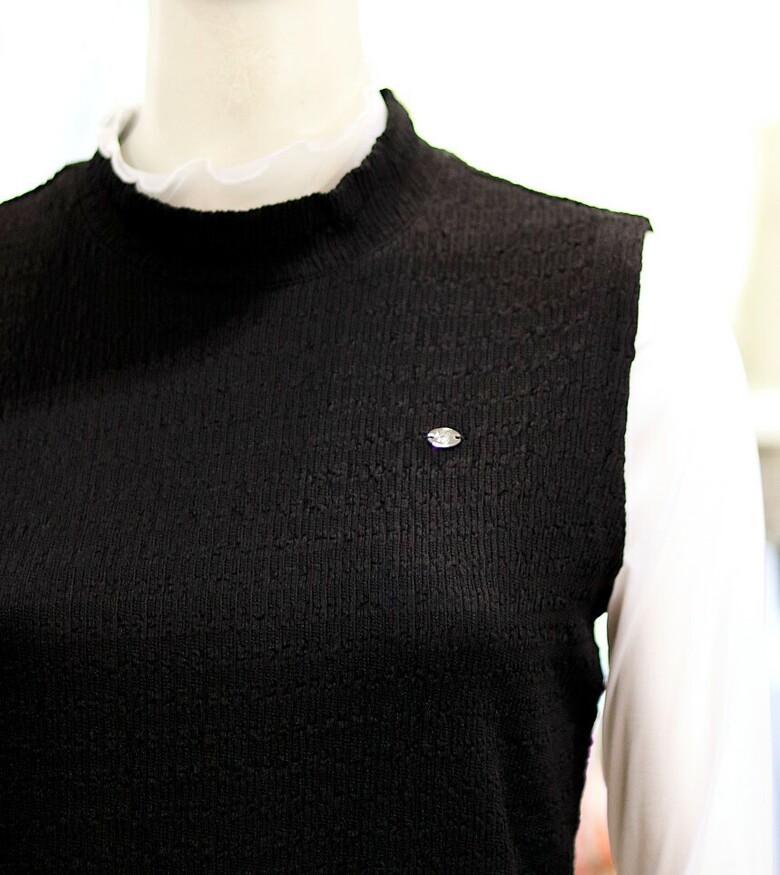 착장감이 편안한 슬리브리스 모크넥 티셔츠입니다