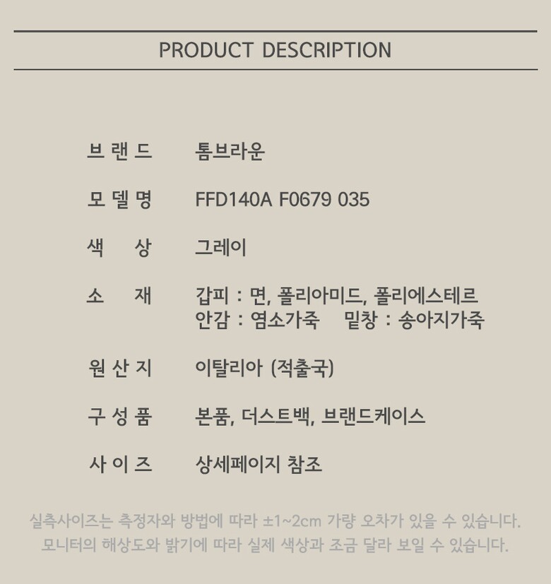 | 1. 제품 소재 (운동화인 경우에는 겉감, 안감을 구분하여 표시) | 상세페이지 참조 |