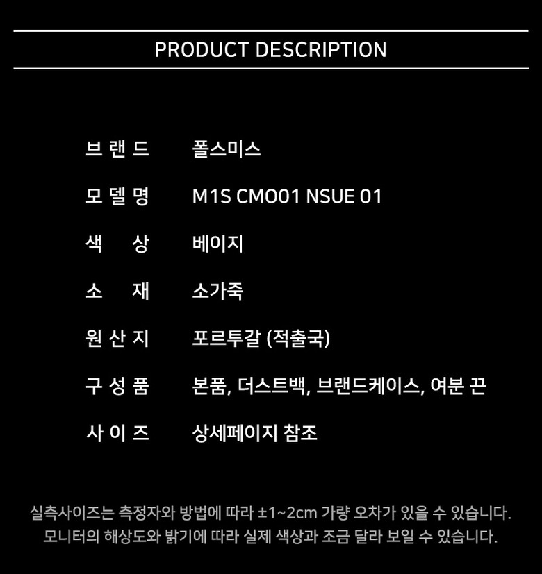 | 1. 제품 소재 (운동화인 경우에는 겉감, 안감을 구분하여 표시) | 상세페이지 참조 |