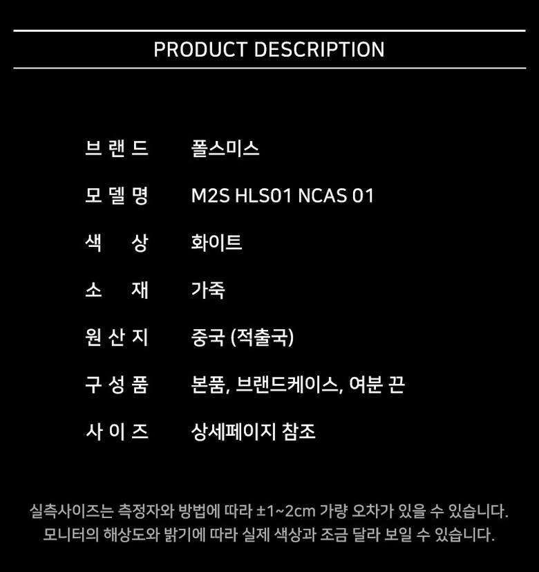 | 1. 제품 소재 (운동화인 경우에는 겉감, 안감을 구분하여 표시) | 상세페이지 참조 |