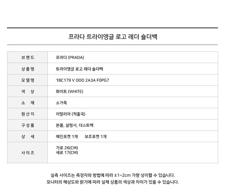- #리본즈코리아 #1BC179VOOO2A3AF0PG7 #[명품] #프라다 #트라이앵글 #로고 #레더 #숄더백 #화이트 #1BC179 #V #OOO #2A3A #F0PG7 #여성 #가방/핸드백 #숄더백/호보백