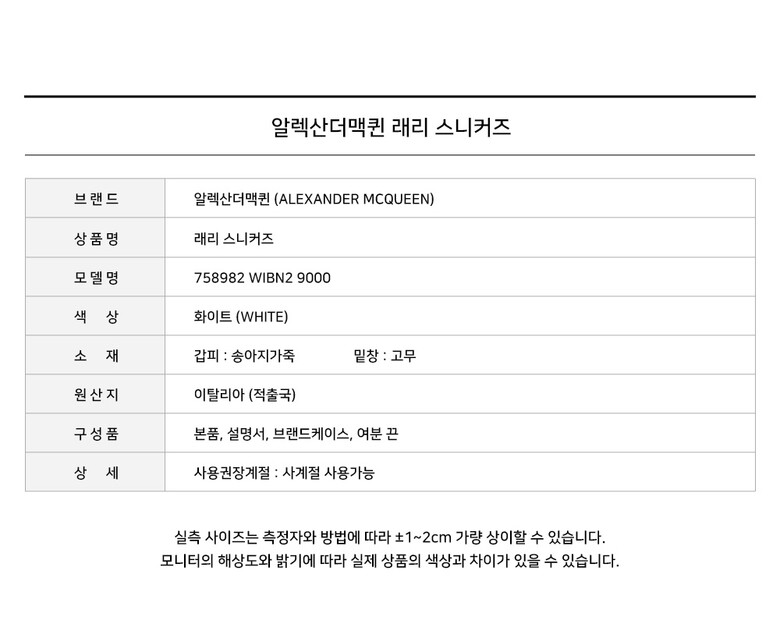 [명품] 알렉산더맥퀸 래리 스니커즈 화이트 758982 WIBN2 9000