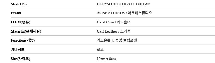[명품] CG0274 CHOCOLATE BROWN 공용 카드홀더