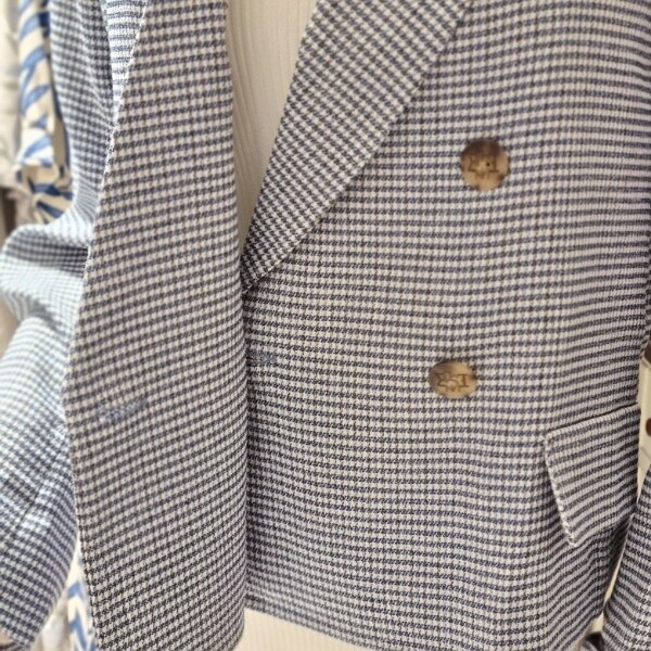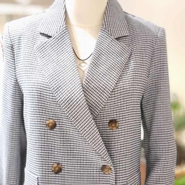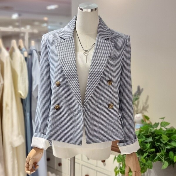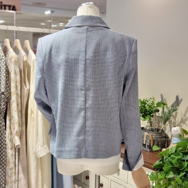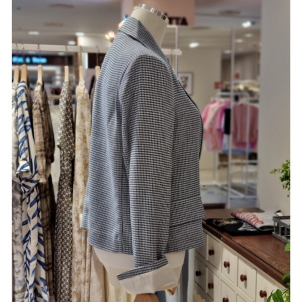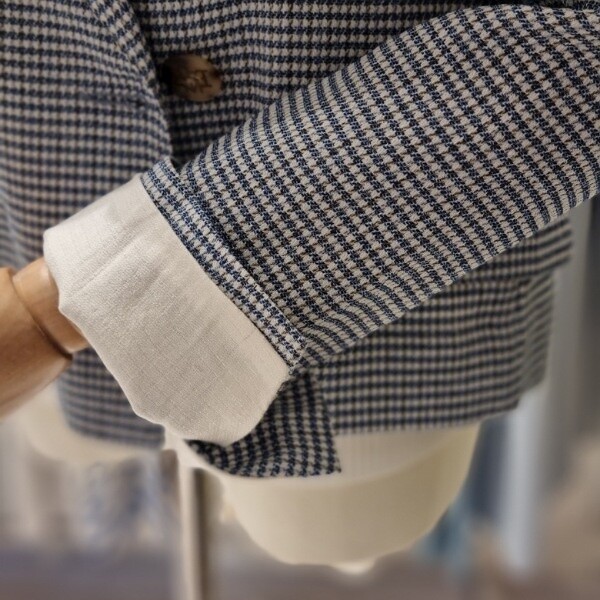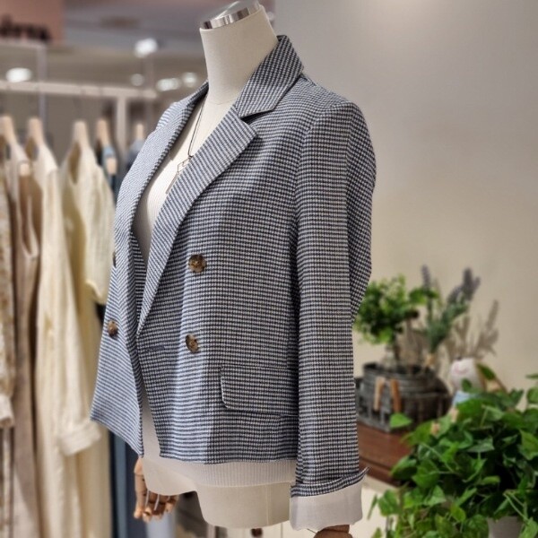 잔체크 린넨자켓더블형 숏자켓롤업형 소매 끝단