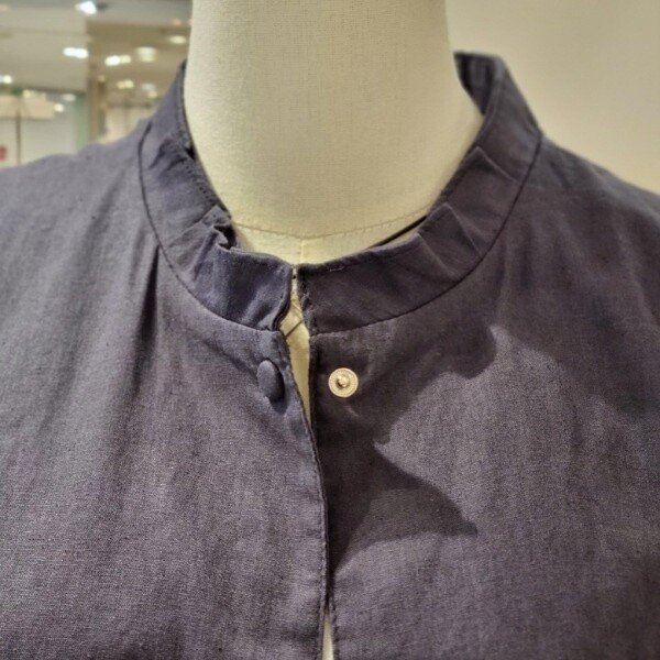 라운드넥 프릴 목선돗도 오픈형 자켓자수포인트 준 캐주얼 린넨자켓