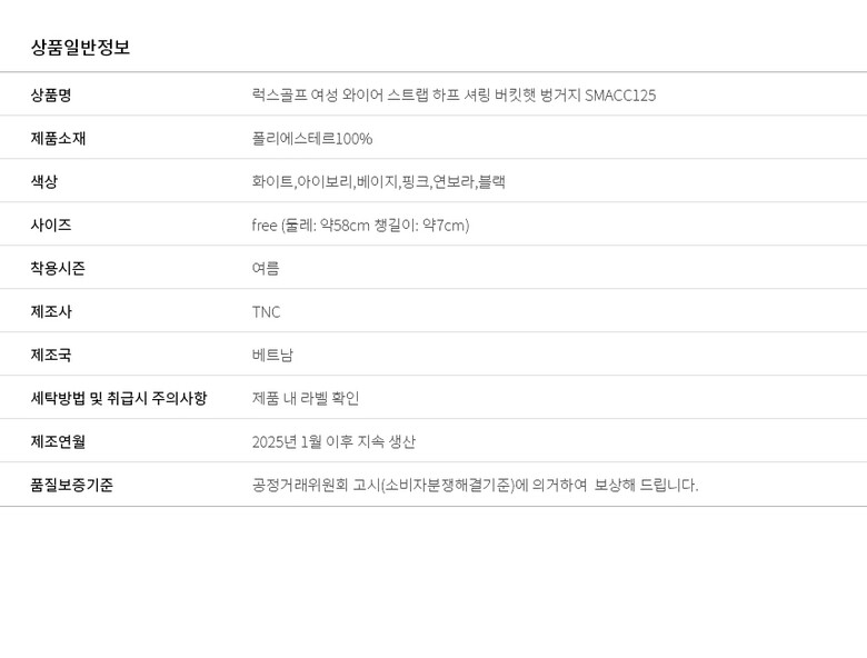 보스케 여성 골프 와이어 스트랩 셔링 버킷햇 벙거지 모자 BQ224