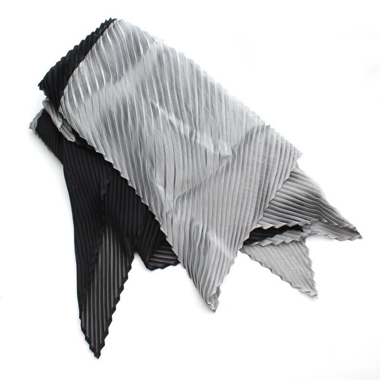 이세이 미야케 me 플리츠 블랙 그레이 스카프를 선보입니다.