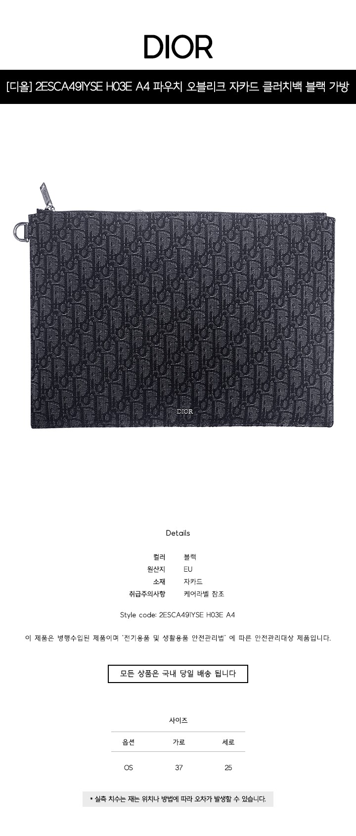 [명품] 2ESCA491YSE H03E A4 파우치 오블리크 자카드 클러치백 블랙 가방 /
