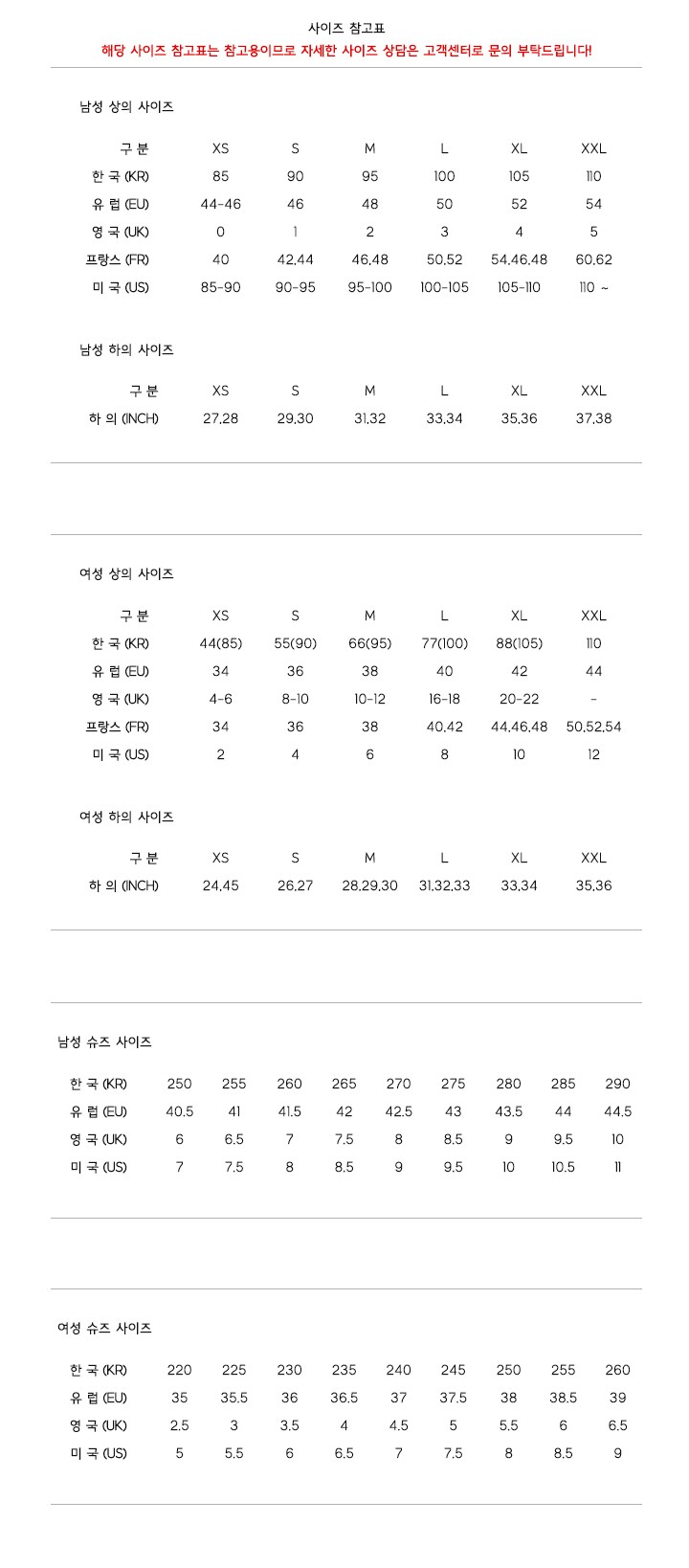 | 9. A/S 책임자와 전화번호 | 마리오 아울렛 고객센터에 문의 바랍니다 |