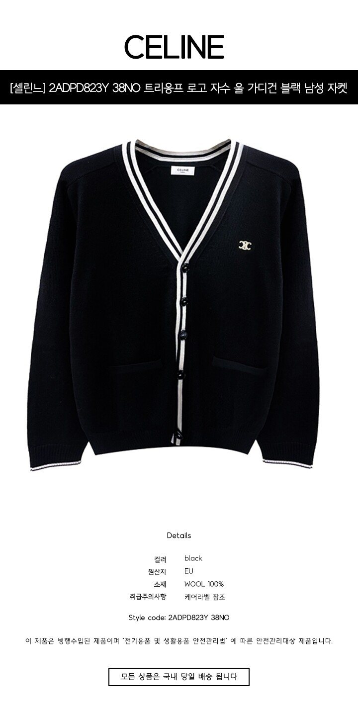 [명품] 2A D823Y 38NO 트리옹프 로고 자수 울 가디건 블랙 남성 자켓 /