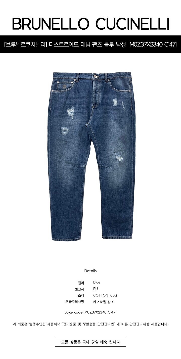 [명품] 디스트로이드 디테일 데님 팬츠 블루 남성 팬츠 M0Z37X2340 C1471 /