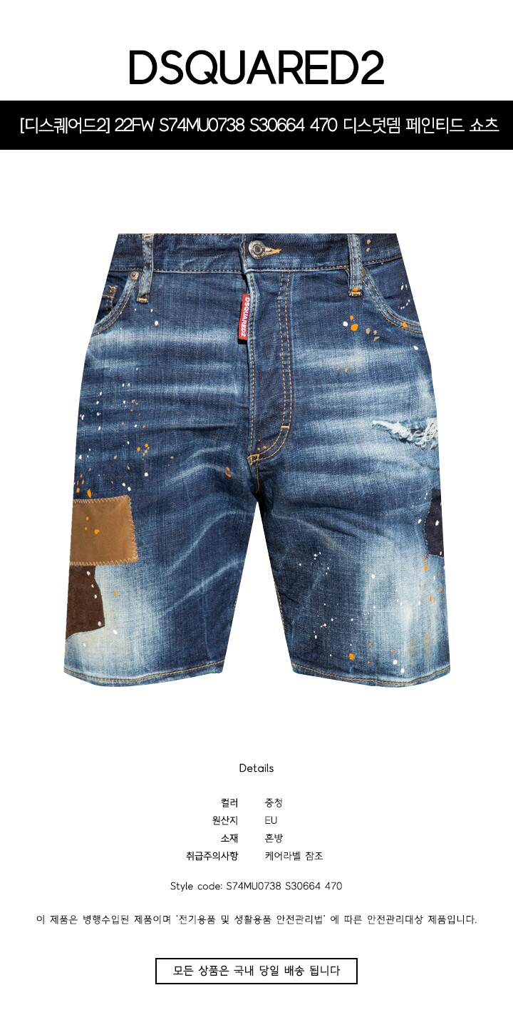 - #리본즈코리아 #22FWS74MU0738S30664470 #[명품] #22FW #S74MU0738 #S30664 #470 #디스덧뎀 #페인티드 #쇼츠 #중청 #남성 #팬츠 #/ #의류 #하의 #청바지
