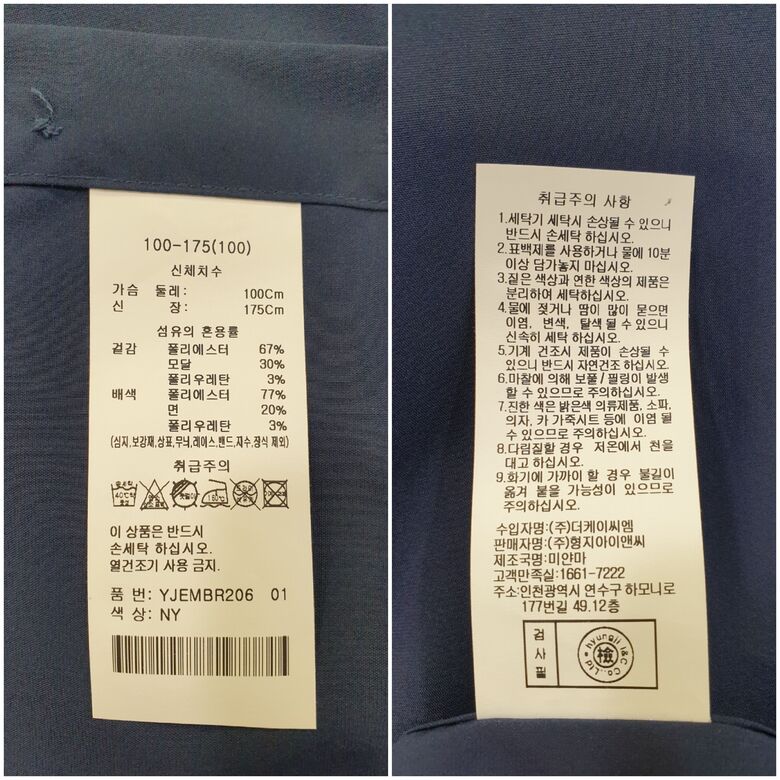 | 6. 세탁방법 및 취급시 주의사항 | 상품상세참조 |