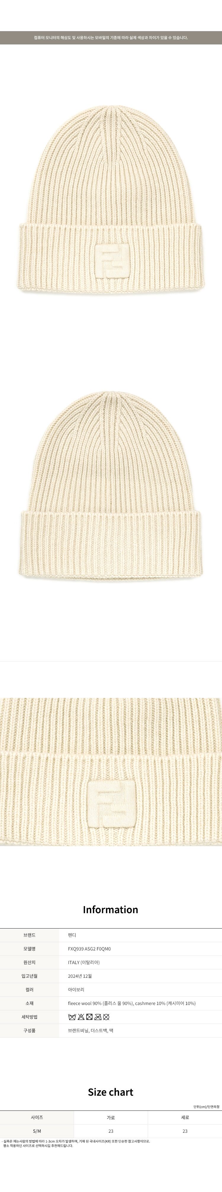 [명품] 펜디 아이보리 FF 울 캐시미어 비니 FXQ939 ASG2 F0QM0