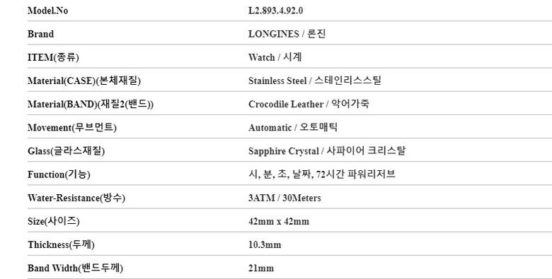 [명품] 론진 L2.893.4.92.0 마스터 컬렉션 남성 가죽시계
