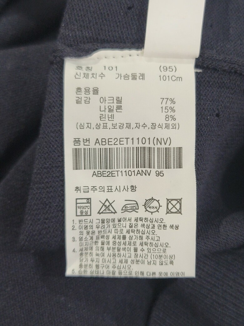 | 1. 제품 소재 (섬유의 조성 또는 혼용률을 백분율로 표시, 기능성인 경우 성적서 또는 허가서) | 겉감:아크릴 77%, 나일론 15%, 린넨 8% |