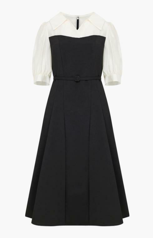밑단은 A라인 절개 스커트로 넓게 퍼지는 실루엣이 더욱 우아한 분위기를 완성합니다.