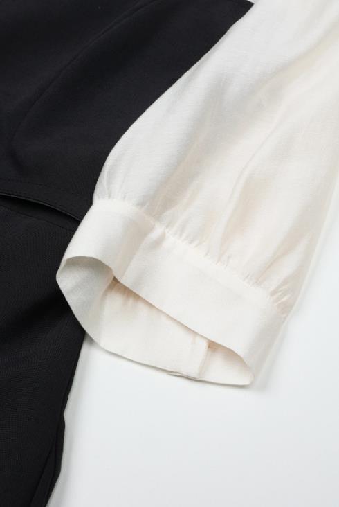 모던한 블랙-네이비 컬러에 쉬폰 소재를 배색하여 포인트를 주었습니다.
