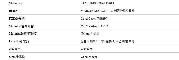 - #리본즈코리아 #SA5UI0019P6994T8013 #[명품] #메종마르지엘라 #SA5UI0019 #P6994 #T8013 #MM6 #넘버링 #로고 #카드지갑 #남성 #지갑 #카드/명함지갑 #카드지갑홀더