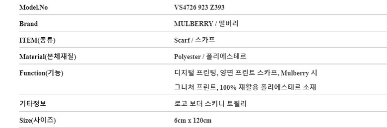 [명품] 멀버리 VS4726 923 Z393 로고 보더 스키니 스카프