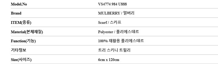 [명품] 멀버리 VS4774 984 U888 트리 스키니 스카프